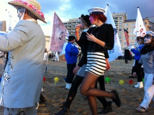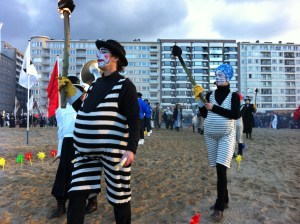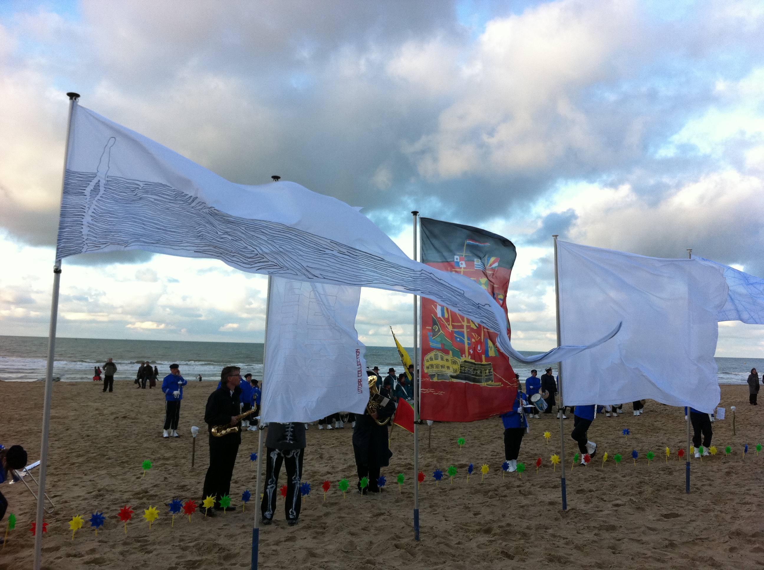 90 artists were asked by Mu.ZEE, oostend, to create a flag for the exhibit PPP (Personals Private Paintings). Yesterdag a big parade was organised in the streets and on the beach.