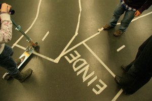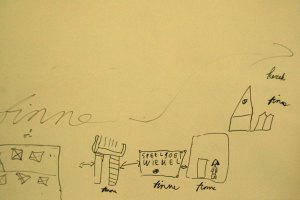 On an interactive score by Stefan Prins, the actors and musicians get computer generated commands.